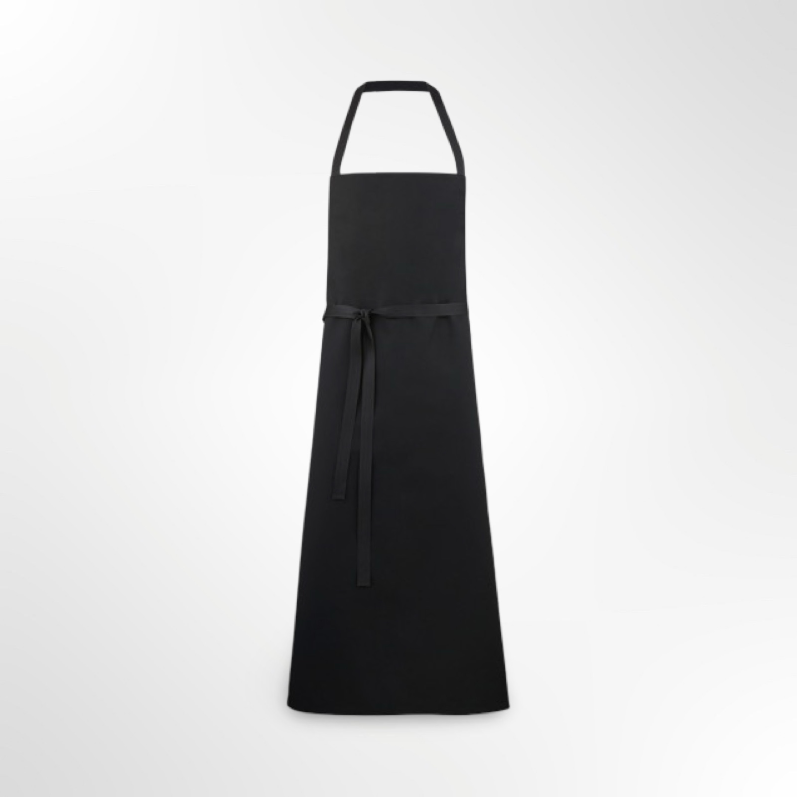 הסינר מגיע בעיצוב נקי וללא כיסים, עם רצועת צוואר קבועה (Fixed neck braid) לנוחות מרבית. הצבע השחור מקנה מראה אלגנטי, יציב ומקצועי — מושלם לשפים, קונספטים אולטרה-נקיים, קונדיטוריות, קצביות ושירות יוקרתי.